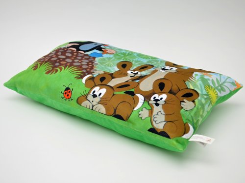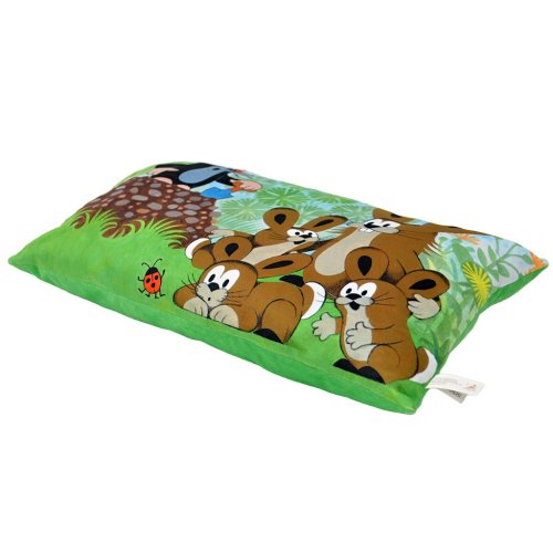 Mäkučký vankúšik s motívom obľúbeného Krtka, vhodný do postieľky, na cesty aj ako dekorácia do izbičky. Materiál mikrovelúr, obrázok tlač, náplň duté vlákno.