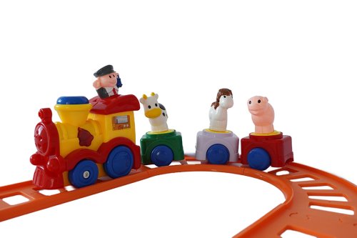 Vlaková dráha s veľkou mašinkou na batérie. Vlak vydáva zvuky.