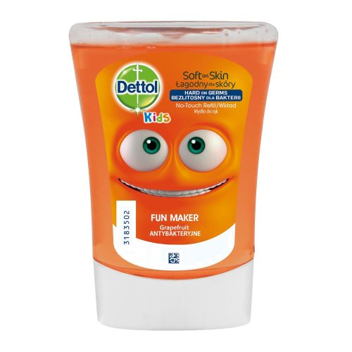 Kids náplň do bezdotykového dávkovača - jemné na koži, drsné k mikróbom Bezdotykový dávkovač mydla Dettol Kids pomôže Vašim deťom umývať si ruky Mydlový kúzelník 250ml - vôňa Harmančeka