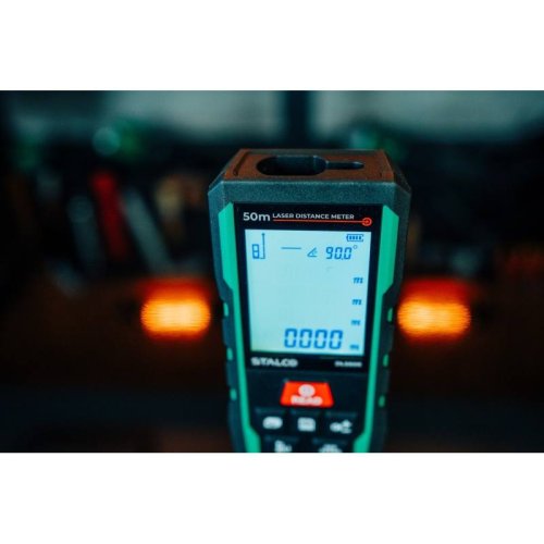 • laserový merač Stalco DLS50R s červeným lúčom na presné meranie na vzdialenosť až 50 metrov