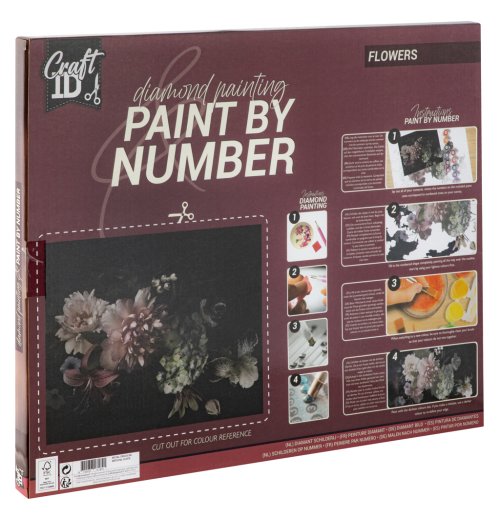 Maľovanie pomocou kamienkov Diamond/podľa čísel Kvety 40×50 cm. Tento obrázok kombinuje dve techniky pomocou kamienkov a maľovania podľa čísel. Súčasťou balenia vodovej farby, štetec, aplikátor, kamienky a obrázok.