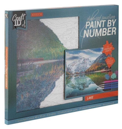 Maľovanie pomocou kamienkov Diamond/podľa čísel Jazero 40×50 cm. Tento obrázok kombinuje dve techniky pomocou kamienkov a maľovania podľa čísel. Súčasťou balenia vodovej farby, štetec, aplikátor, kamienky a obrázok.