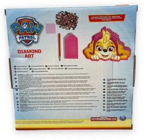 Kreatívna sada diamantové maľovanie. Pomocou nalepovania malých kamienkov/diamantov na predlohu si vytvor nádherný obrázok psíka Skye z rozprávky Tlapková patrola o veľkosti 18x18 cm, sada obsahuje obrázok/predlohu, kamienky/diamanty, pero na aplikáciu kamienkov na predlohu, tácka, lepiaca štvorček