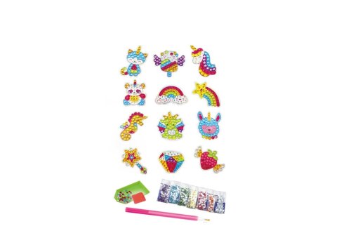 Ozdôb si zápisník, denník, menovky na darčeky a ďalšie… Diamantové tvorenie: 1. Odlúpnutím fólie, odkryješ na vybranom obrázku lepidlo 2. Ponor pero do vosku 3. Naberaj drahokamy perom 4. Umiestni drahokamy na plochu lepidla.