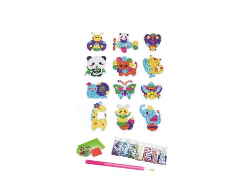 Ozdôb si zápisník, denník, menovky na darčeky a ďalšie… Diamantové tvorenie: 1. Odlúpnutím fólie, odkryješ na vybranom obrázku lepidlo 2. Ponor pero do vosku 3. Naberaj drahokamy perom 4. Umiestni drahokamy na plochu lepidla.