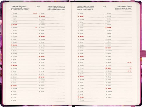 Diár 2025: Fialová, týždenný, 13 × 21 cm