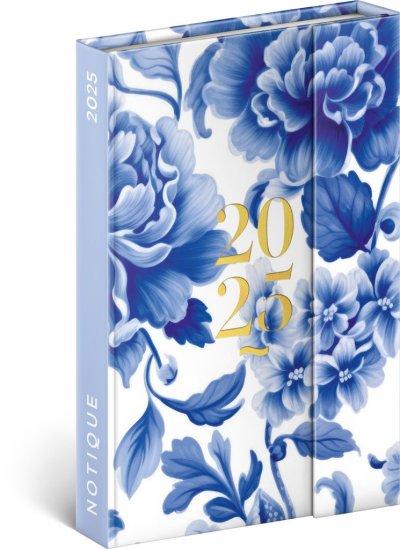 Diár 2025: Modrý kvet - týždenný, magnetický, 11 × 16 cm
