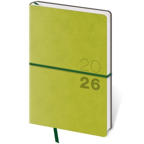 Moderný diár v mäkkej ohybnej väzbe s guľatou priečnou gumičkou cez chrbát predstavuje najnovší spôsob spracovania Diár je príjemný do ruky vďaka matnej koženke a ľahký vďaka mäkkým doskám Rozmer: 9 x 14 …