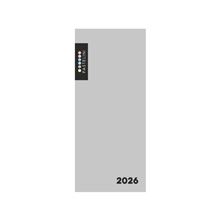 Mesačný diár pre rok 2026 z PVC Rozmer 92 x 160 x 8 mm Celkom 80 strán Info strany obsahujú: prehľadný kalendár 2026/2027, plánovací kalendár 2026, štátne sviatky a významné dni, priestor pre poznámky, …