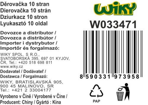 Dierovačka na 10 listov. Rozmer dierovača: 10,2x5x4x8 cm Čierna farba.