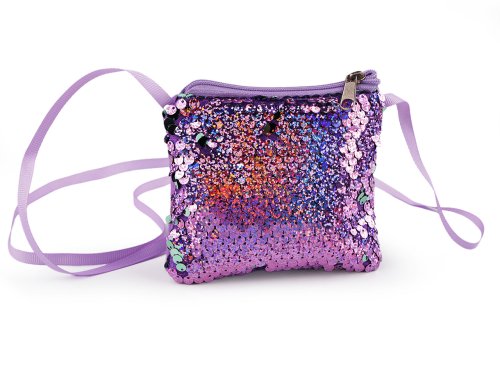 Dievčenská kabelka / puzdro na krk s flitrami 11x10 cm - fialová lila zelená