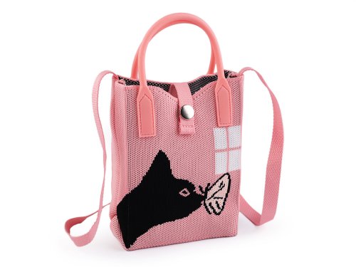 Malá kabelka s dizajnom roztomilé mačky poteší všetky dievčatá. Je zaujímavá svojim pleteninovým materiálom, ktorý je pevný. Taška sa uzatvára pomocou pútka s patentom. Má dve silikónové uši a textilný popruh, dá sa nosiť v ruke aj ako crossbody cez rameno či do kríža.