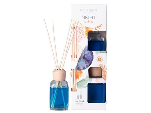 Elegantný vonný difuzér D-Aróma s vôňou Night Life sa stane obľúbenou dekoráciou vo vašej domácnosti. Nechajte svoj domov predchnúť jemnou a sviežou vôňou Night Life, ktorá krásne prevonia váš domov. Vôňa sa začne uvoľňovať po vložení tyčiniek do difuzéra. Intenzitu vône si môžete nastaviť počtom tyčiniek v difuzéri. Vonný difuzér je vhodný aj ako darček pre vašich blízkych. Objem 2x75ml. Doba prevoňania jedného difuzéra až 6 týždňov.