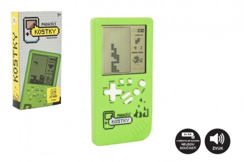 Klasická elektronická hra so skladaním kociek. Cieľom hry je skladať rôzne tvary do seba a nenechať žiadne miesto v rade prázdne. Po zaplnení celého radu sa posunie všetko o radu dole. Skladať môžete až do zaplnenia celého displeja. Hra je na batérie, so zvukom. Batérie 2x AA nie sú súčasťou výrobku. Rozmer balenia 7,5 x 14,5 x 2,5 cm Vhodné pre deti od 3 rokov.