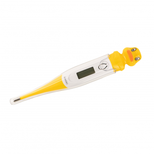 Digitálny teplomer s flexibilnou špičkou a farebným zvieratkom.