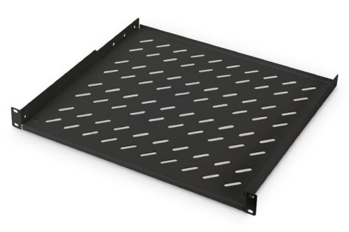 1U pevná polica pre stojany od hĺbky 600 mm 44x482x399 mm, do 15 kg, čierna (RAL 9005)