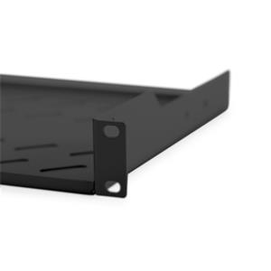 1U pevná polica pre stojany od hĺbky 400 mm 45x483x250 mm, do 15 kg, čierna (RAL 9005)
