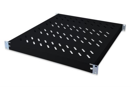 1U pevná polica pre stojany s hĺbkou 600 mm 44x482x350 mm, nastavenie. Hĺbka 350 - 550 mm, čierna