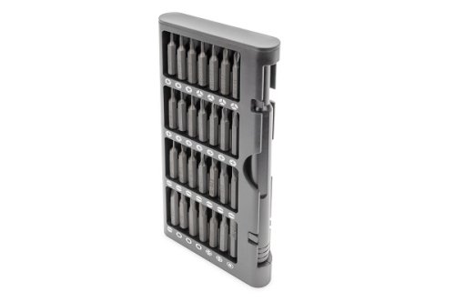 Súprava náradia DIGITUS obsahuje veľký výber skrutkovacích bitov a je dodávaná v praktickej hliníkovej krabici, ktorá sa ľahko prepravuje a je rýchlo pripravená na použitie. Skrutkovacie bity sú vyrobené z vysoko kvalitnej nástrojovej ocele S2, a preto sú robustné a odolné. Najmä pre opravy smartfónov, inštaláciu počítačového príslušenstva alebo pre stavbu modelov je vždy k dispozícii správny skrutkovač.