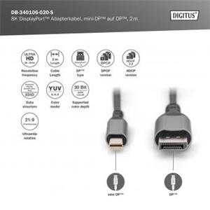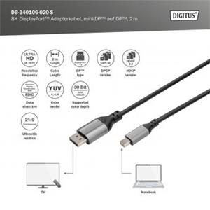 8K @ 60Hz, mini DP až DP; DP 1.4 Alu puzdro; Čierny; 2m