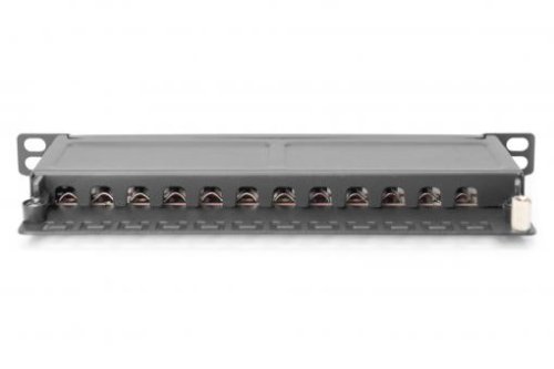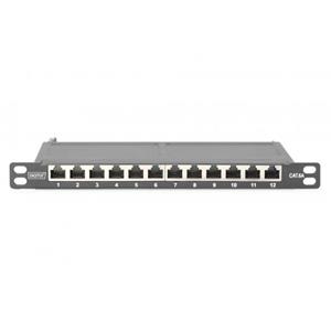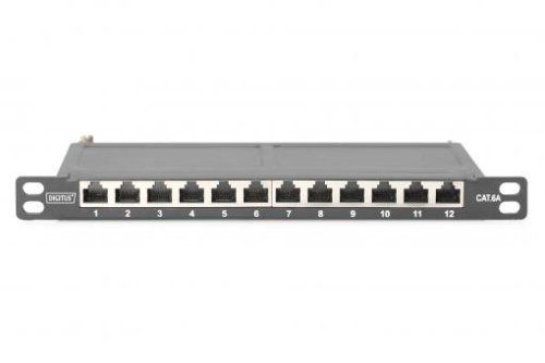 Patch panel CAT 6A, tienený, 12portový 1/2U, 10" montáž do stojana, čierna RAL 9005