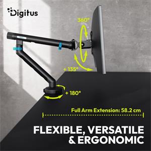 Plne mobilný držiak pre jeden monitor je ideálnym riešením pre moderné pracovné stanice, kde je flexibilita, ergonómia a organizácia prvoradá. Tento držiak je určený pre obrazovky do 35 palcov as nosnosťou až 10 kg, takže je vhodný ako pre ploché, tak aj pre zakrivené monitory. Vďaka integrovanému pružinovému napínaciemu mechanizmu je možné monitor plynule nastaviť na príslušnú hmotnosť bez použitia náradia – pre dokonalú rovnováhu a ľahké nastavenie v akejkoľvek polohe. Držiak ponúka maximálnu mobilitu: otáčanie, naklápanie, otáčanie a nastavenie výšky umožňujú ergonomické nastavenie monitora podľa individuálnych požiadaviek. Praktická funkcia rýchloupínania VESA umožňuje rýchle a jednoduché pripevnenie alebo odobratie obrazovky, zatiaľ čo rýchloupínacia spojka uľahčuje inštaláciu držiaka. Vďaka svojmu priestorovo úspornému dizajnu a integrovanému systému správy káblov držiak monitora nielen zaisťuje úhľadný vzhľad, ale tiež maximalizuje využiteľnú pracovnú plochu. Dve možnosti montáže – stolová svorka alebo priechodka – ponúkajú dodatočnú flexibilitu montáže. Držiak je kompatibilný so štandardmi VESA 75x75 a 100x100, a preto je všestranný.