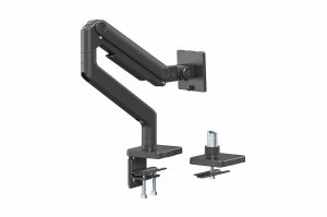 Výkonný držiak monitora pre maximálnu flexibilitu a stabilitu Tento plne mobilný držiak na stôl bol špeciálne vyvinutý pre veľké monitory do 49 palcov a hmotnosti až 20 kg - ideálny pre náročné pracovné prostredie a vysoko kvalitné nastavenia. Či už sa jedná o plochú obrazovku alebo zakrivený displej: držiak ponúka maximálnu stabilitu a flexibilitu v priestorovo úspornom prevedení. Vďaka robustnej konštrukcii pre vysoké zaťaženie bez námahy podopiera aj ťažké monitory a zároveň umožňuje presné vyrovnanie vo všetkých smeroch. Integrované napätie pružiny zaisťuje jemné nastavenie hmotnosti, takže monitor je možné bez námahy uviesť do požadovanej polohy - bez akéhokoľvek dodatočného nastavovania. Funkcia rýchleho uvoľnenia VESA zaisťuje maximálnu užívateľskú prívetivosť: monitor je možné rýchlo a ľahko namontovať alebo demontovať. Inovatívna rýchlospojka tiež uľahčuje spojenie oboch segmentov ramena a výrazne znižuje náklady na inštaláciu. Vďaka dvom flexibilným možnostiam montáže - stolnej svorke alebo priechodke - je možné držiak pripevniť takmer ku každej pracovnej stanici. Integrovaný doraz otáčania o 180 ° zabraňuje náhodným nárazom do stien alebo susedných obrazoviek, zatiaľ čo inteligentné vedenie káblov zaisťuje úhľadný a profesionálny vzhľad. Ideálne pre užívateľov, ktorí oceňujú ergonómiu, stabilitu a funkčnosť – či už v kancelárii, štúdiu alebo domácej kancelárii.