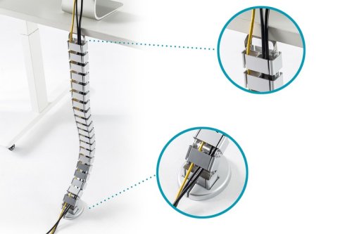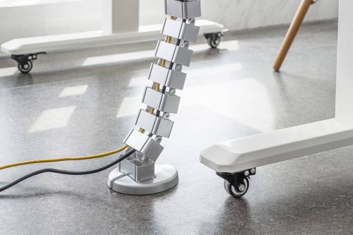 Káblový had je dokonalým doplnkom na skrytie káblov vedúcich od podlahy k doske stolov výškovo nastaviteľných a voľne stojacich stolov