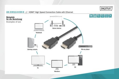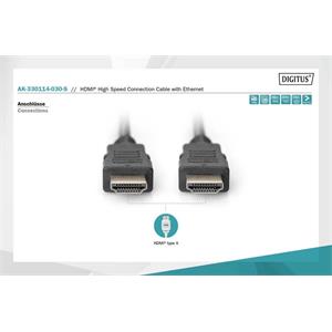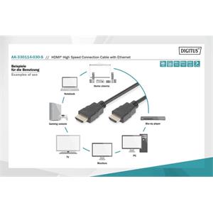 Digitus HDMI High Speed + Ethernet pripojovací kábel, 2x tienený, 3m