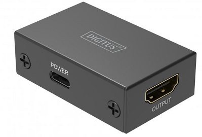 Opakovač DIGITUS® 8K HDMI rozširuje signály v rozlíšení 8K/60Hz (4:4:4) až na 10 m. 4K/60Hz (4:4:4) je možné rozšíriť až na 13 m. S opakovačom je možné kaskádovať dva zodpovedajúce káble HDMI. Vďaka špeciálnej konštrukcii je opakovač napájaný aj cez HDMI (5V). USB-C, ak to vyžaduje vaše nastavenie.