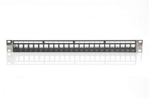 DIGITUS Modulárny prepojovací panel, tienený 24 portov, Blank, 1U, Rack Mount, farebná čierna priehľadná poľa štítkov