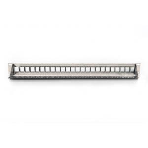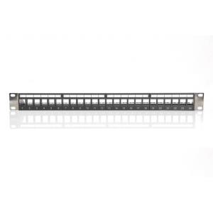 Modulárny prepojovací panel DIGITUS® je špeciálne navrhnutý pre inštaláciu 19" stojana a pre montáž kestone modulov DIGITUS®. Modulárny prepojovací panel je k dispozícii v dvoch rôznych farbách, šedá RAL 7035 a čierna RAL 9005. Materiál tela je SPCC, 1,55 mm za studená tollrf C-oceľ v súlade s JIS G3141-1996.Predná časť modulárneho patch panelu je vyrobená z ABS High-Impact UL-94V-0.Zadná riadiaca lišta so špeciálne navrhnutými pozíciami káblových zväzkov sa dodáva ako západka nástroj pre jednoduchú inštaláciu. stavebnica je tiež uzemňovacia sada.