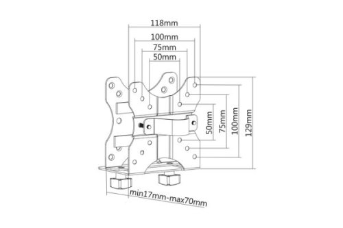 Multifunkčný držiak stolného počítača pre stolné svorky alebo medzi držiaky VESA, VESA 75x75, 100x100