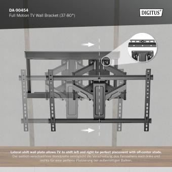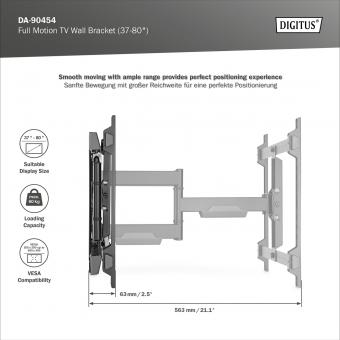Plný pohyb (natočenie, naklopenie, posunutie) pre optimálne polohovanie s vysokou nosnosťou (max. 60 kg) a širokou kompatibilitou (displeje max. 37-80")