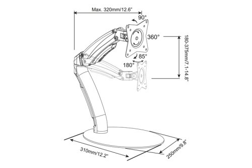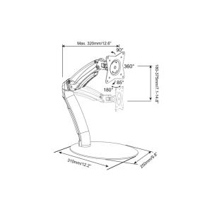 Univerzálny stolný stojan umožňuje inštaláciu LED a LCD monitorov všetkých značiek vo veľkostiach až 69 cm (27"). Rameno plynovej pružiny umožňuje nastavenie monitora do ľubovoľnej výšky. Jednoducho poznamenajte veľkosť VESA a hmotnosť monitora, aby bolo možné vybrať vhodný držiak stola.