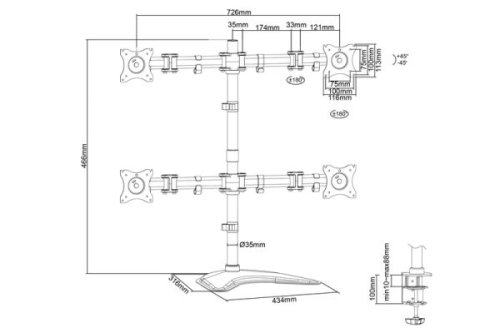Flexibilný univerzálny držiak monitora na nastavenie 4 obrazoviek v dokonalom zarovnaní. Jednoduché otočenie horizontálne aj vertikálne. Jednoducho upravte výšku pohľadu podľa potreby. Vďaka mikro nastavenia hláv môžete ľahko vyrovnať výšku aj mierne odlišných monitorov. Stojan na monitor umožňuje inštaláciu LED a LCD monitorov všetkých značiek. Jednoducho si všimnite veľkosť VESA a hmotnosť vašich monitorov, aby ste mohli vybrať vhodný stojan.