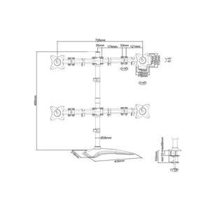 Univerzálny držiak štyroch monitorov s možnosťou stojana/svorky pre obrazovky do 69 cm (27 ")