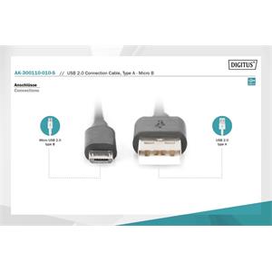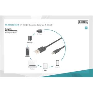 Pre pripojenie externých zariadení USB (s konektorom USB micro B, napr. prehrávač MP3, smartfón alebo externý kryt pevného disku) k hostiteľskému zariadeniu USB (napr. PC, notebook alebo rozbočovač USB). Rýchlosť prenosu dát až 480 Mb/s (High-Speed).