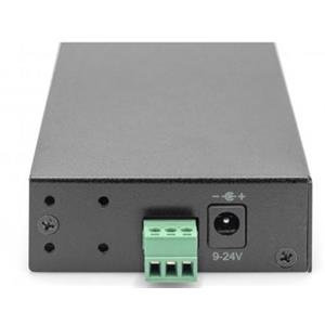 Priemyselný USB 3.0 húb DIGITUS® je vďaka kovovému puzdru ideálny pre priemyselné aplikácie. Je možné ho namontovať na stenu alebo na nosnú lištu a pripojí sa k počítaču, notebooku alebo serveru pomocou priloženého USB 3.0 kábla. Podporované je USB 3.0 superspeed s rýchlosťou prenosu dát až 5 Gbit/s, zároveň je hub downward kompatibilný s USB 2.0 a USB 1.1. Rozbočovač je možné napájať cez konektor dvojvodičovej svorkovnice (+9V až 24V). Voliteľne je možné ku konektoru DC pripojiť externý napájací zdroj.
