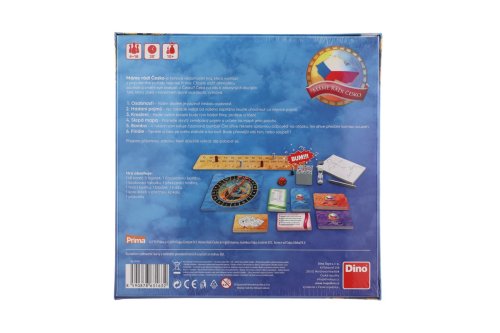 Užite si rovnakú dávku napätia, akú poznajú súťažiaci z televízneho programu Máme radi Česko. Vedomostná hra na motívy populárnej TV súťaže proti sebe stavia dva tímy, ktoré merajú svoje znalosti o našej vlasti. Cieľ je jasný – získať čo najviac bodov vo všetkých disciplínach. Otestujete nielen svoje vedomosti, ale aj kreativitu a pohotovosť. Ktoré disciplíny vás čakajú? Budete hádať mená slávnych českých osobností, hádať správne pojmy podľa popisu kapitána tímu a podobne to bude aj pri kreslení, kedy musíte poznať, čo chce spoluhráč svojim výtvarným umením povedať. Pre milovníkov zemepisu bude lahôdkou slepá mapa, fanúšikovia adrenalínu sa pobavia pri bombe. Stihnete odpovedať správne skôr, než vybuchne? Na záver ešte poradím môžu zamiešať finálové karty . Balenie obsahuje: 148 kariet, 5 figúrok, 1 presýpacie hodiny (1,5 minúty), 1 hracia kocka, 1 bloček, 1 ceruzka, 1 bodovacia tabuľka, 1 tikajúca bomba, 1 kolo šťastia.