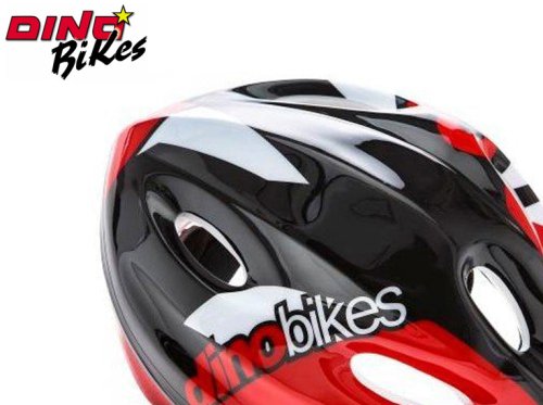 Detská cyklistická helma Dino Bikes v čierno-bielo-červenej kombinácii.