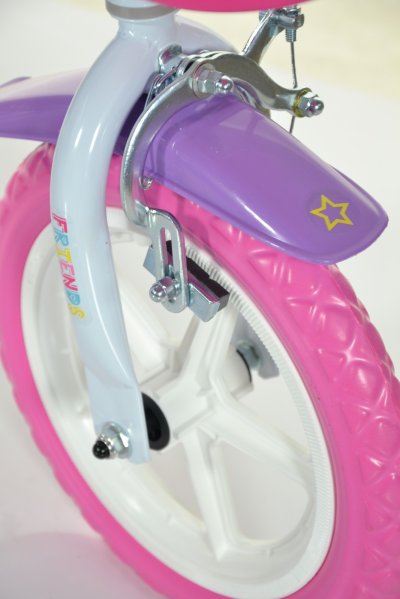 detský bicykel 12", košík, plná pneumatika, 1 predná brzda, stály prevod - tzv. "furtšľap", pomocné kolieska, hmotnosť kolesa 6,5 kg, odporúčaná výška užívateľa 87-110cm, nosnosť 40 kg