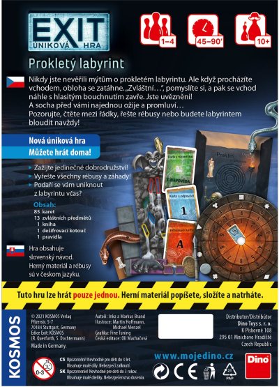 Vstúpite do tajomného labyrintu. Vtom sa náhle s hlasným buchnutím zavrie. Ste uväznení! A socha pred vami zrazu ožije a prehovorí… Vyriešte rébusy alebo budete labyrintom blúdiť navždy! Vek: 10+. Texty hry v CZ, pravidlá CZ/SK.