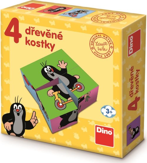 Drevené obrázkové kocky poslúžia ako nielen ako skladačka, ale aj ako prvá jednoduchá stavebnica najmä pre obľúbenú hru - stavanie a búranie komínov. Detské kocky precvičia u najmenších detí predstavivosť aj jemnú motoriku prstov. Staršie deti pri skladaní obrázkov rozvíja fantáziu, orientáciu a logické myslenie, a kocky ich motivujú k rozprávaniu príbehov. 6 obrázkov - 4 kocky balené v kartónovej krabičke. Drevené obrázkové kocky DINO sú vyrobené v Českej republike z kvalitného smrekového dreva.