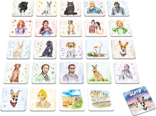 Pre rozvíjanie bystrosti nie je lepší spoločník ako roztomilý Gump a jeho psia kamarátka Kytička! Pexeso s ilustrovanými obrázkami psíka Gumpa, jeho pánov a ďalších štvornohých kamarátov je skvelý spôsob, ako trénovať detský postreh . Hranie pexesa nielenže posilňuje pamäť, ale tiež učí deti trpezlivosti. Užite si zábavu a pozorujte, ako na začiatku môže byť hra zdanlivo nekonečná, než sa súper rozhodne otočiť vybrané kartičky. Pexeso obsahuje 24 pevných kartónových kartičiek a je vhodné pre deti od 4 rokov, ale aj mladšie šikulové sa s ním môžu dobre baviť. Všetko bolo vyrobené a ilustrované v Č R. Hlavné vlastnosti: 24 pevných kartónových kartičiek precvičuje pamäť, rozlišovacie schopnosti vyrobené v ČR