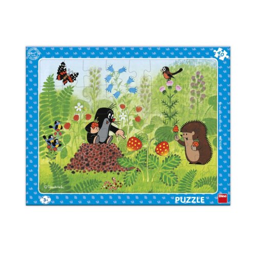 Krtko a jahody - neodmysliteľná dvojica každého detstva. Vyladené obrázkové puzzle so 40 dielikmi, ktoré má pevný rámček a podkladovú dosku s tvarmi jednotlivých puzzlí, aby sa to deťom lepšie skladalo. Časti sú veľké, pevné a dobre sa skladajú deťom už od 3 rokov, ale zvládnu ho určite aj menšie. Hlavné vlastnosti: skladačka bola vyrobená v ČRkostičky tvorí odolný kartón, ktorý sa nezničí ani pri neopatrnom zaobchádzaní, čo dokazujú aj dôkladné testymateriál je navyše zdravotne nezávadný a spĺňa prísne bezpečnostné normypuzzle pomáha deťom zlepšiť motoriku, rozvíja fantáziu a pozornosť © Zdeněk Miler