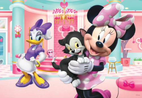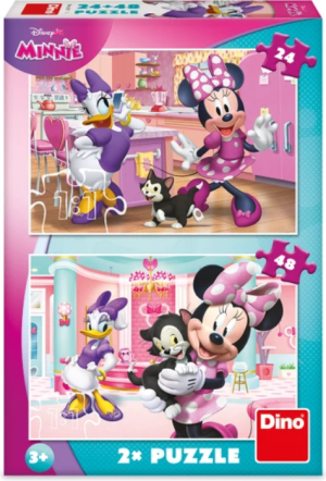 Dve puzzle pre deti s kresleným motívom Minnie, Daisy a Figara. Rozmer zloženého puzzle cca 26,4 x 18,1 cm