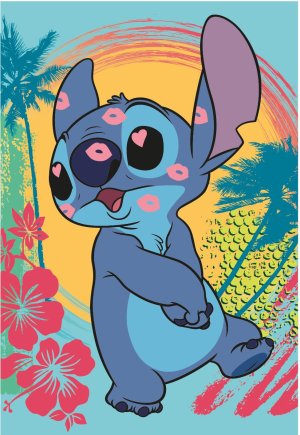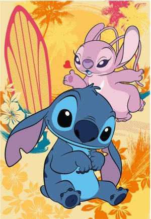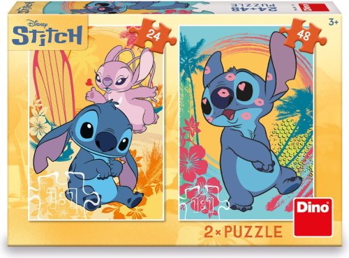Dve puzzle pre deti s kresleným motívom Stitcha. Rozmer zloženého puzzle cca 26,4 x 18,1 cm