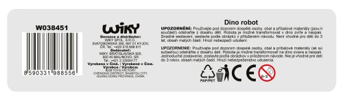 Dino robot. - slovenský obal. Rozmery 17x3x19 cm. 2 varianty - modrá, zelená.