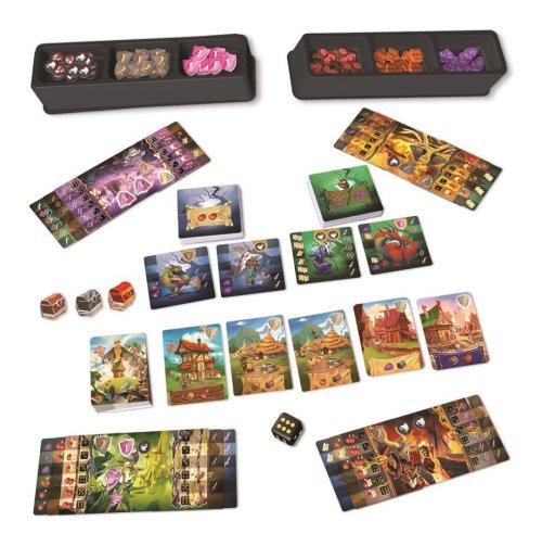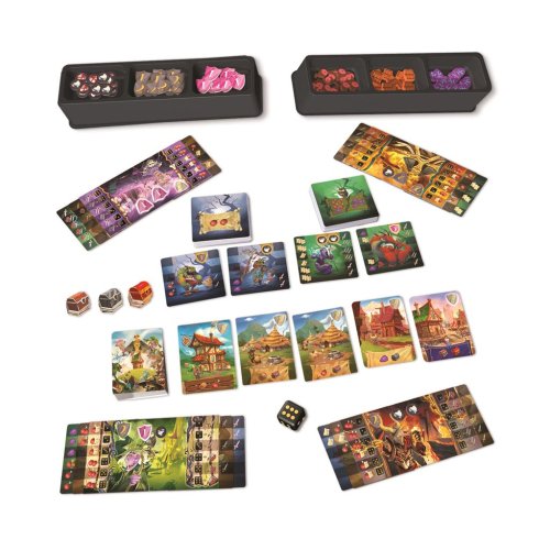 Ako sa stať najmocnejším mágom všetkých čias? Spriahnite sa s príšerami, drakmi, goblinmi a využite ich pre budovanie vášho kúzelného panstva. Pošlite ich na prieskum terénu, pre cenné suroviny, postavte silnú armádu a neváhajte útočiť na ríšu obyčajných smrteľníkov aj na svojich protivníkov. Len tak sa stanete ich vládcom. Odmenou za vaše úsilie vám budú truhlice plné pokladov, ktoré pomôžu upevniť vašu moc a silu. Táto spoločenská hra je klasickou strategickou doskovkou, pri ktorej si skvele precvičíte logické aj strategické myslenie. Tým najdôležitejším cieľom bude užiť si spoločne strávený čas s kamarátmi alebo rodinou. Balenie obsahuje: 5 dosiek hradu, 25 kariet osád (1 hostinec, 7 statkov, 7 dedín, 10 miest), 76 kariet netvor (10 goblinov, 46 zlých príšer, 20 ultra zlých príšer), 50 žetónov truhlice s pokladom 20 kovových a 10 zlatých truhiel), 1 zásobník na bonusové žetóny, 45 bonusových žetónov (20 žetónov štítu, 17 žetónov prehodenia, 8 žetónov magického štítu), 1 zásobník na žetóny surovín, 60 žetónov jedla, rún a súdkov (30 žetónov jedla 20 run, 10 súdkov), 1 hracia kocka, pravidlá.